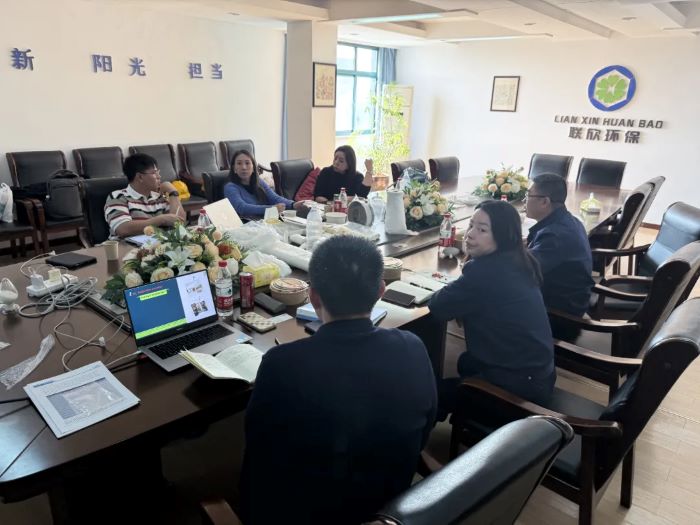 聯欣環保泰興工廠的總經理閆總與聯欣環??偛康臓I銷總監劉總率領團隊,以誠摯的熱情和精湛的專業素養,迎接泰國客人的到訪,充分彰顯了公司的雄厚實力與獨特風采。